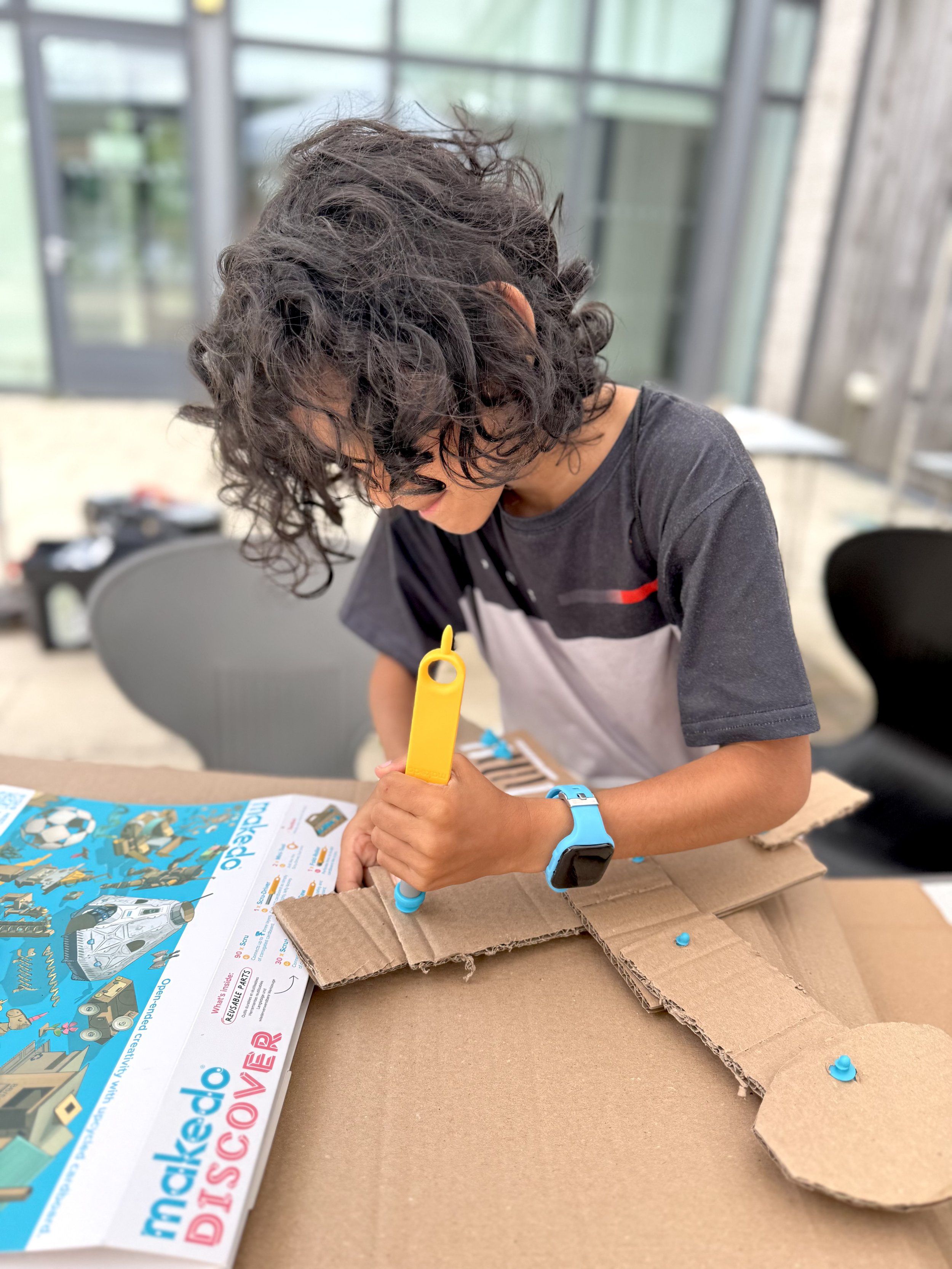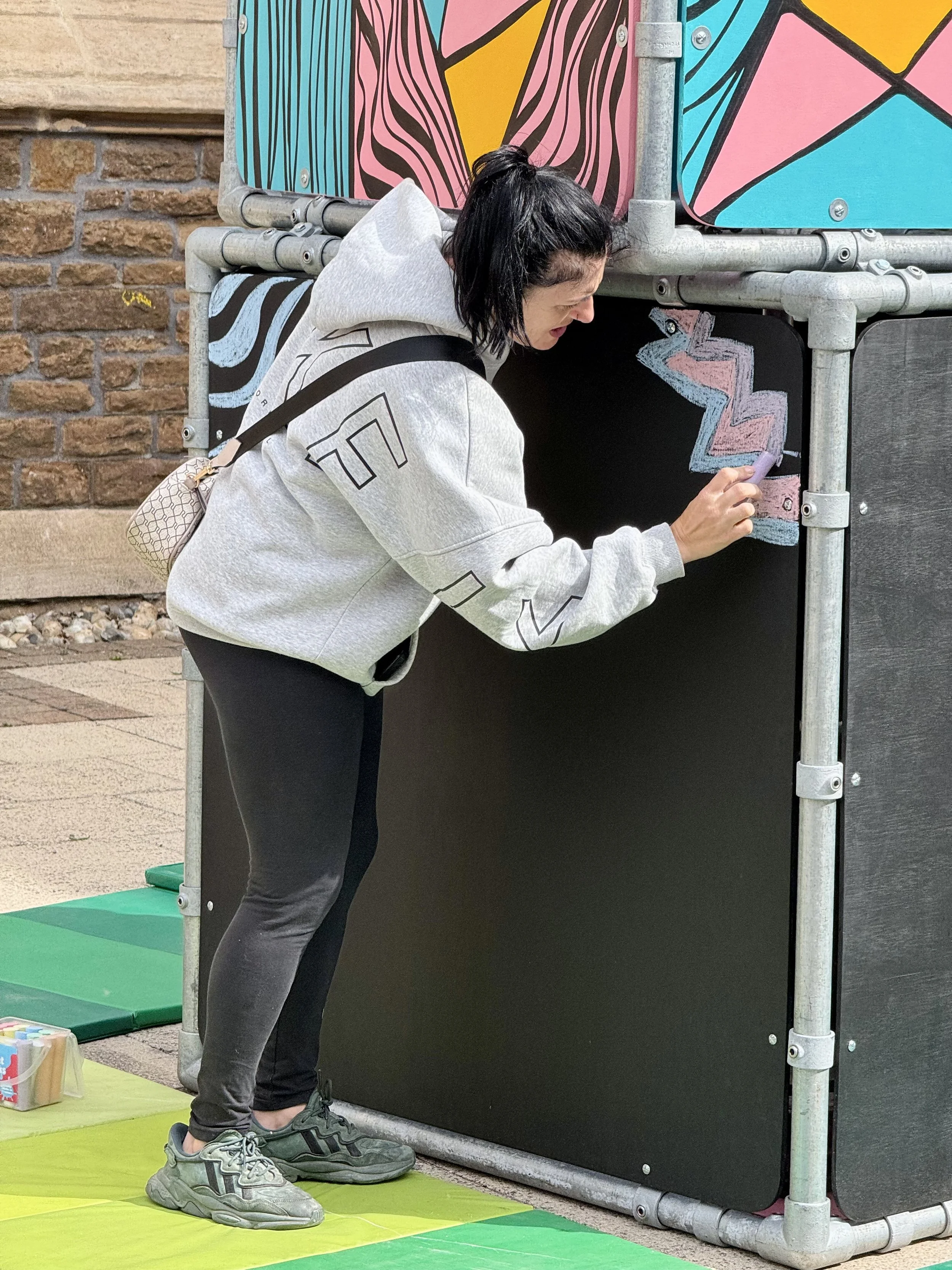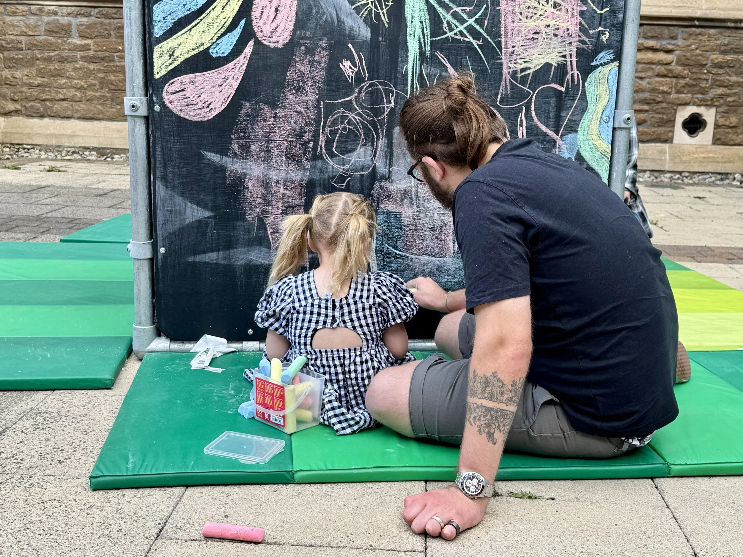 To celebrate the installation of this artwork, we delivered two days of drop-in family workshops where children, parents and grandparents added chalk patterns to the base layer of the tower and constructed cardboard headdresses inspired by Tower of Totem.